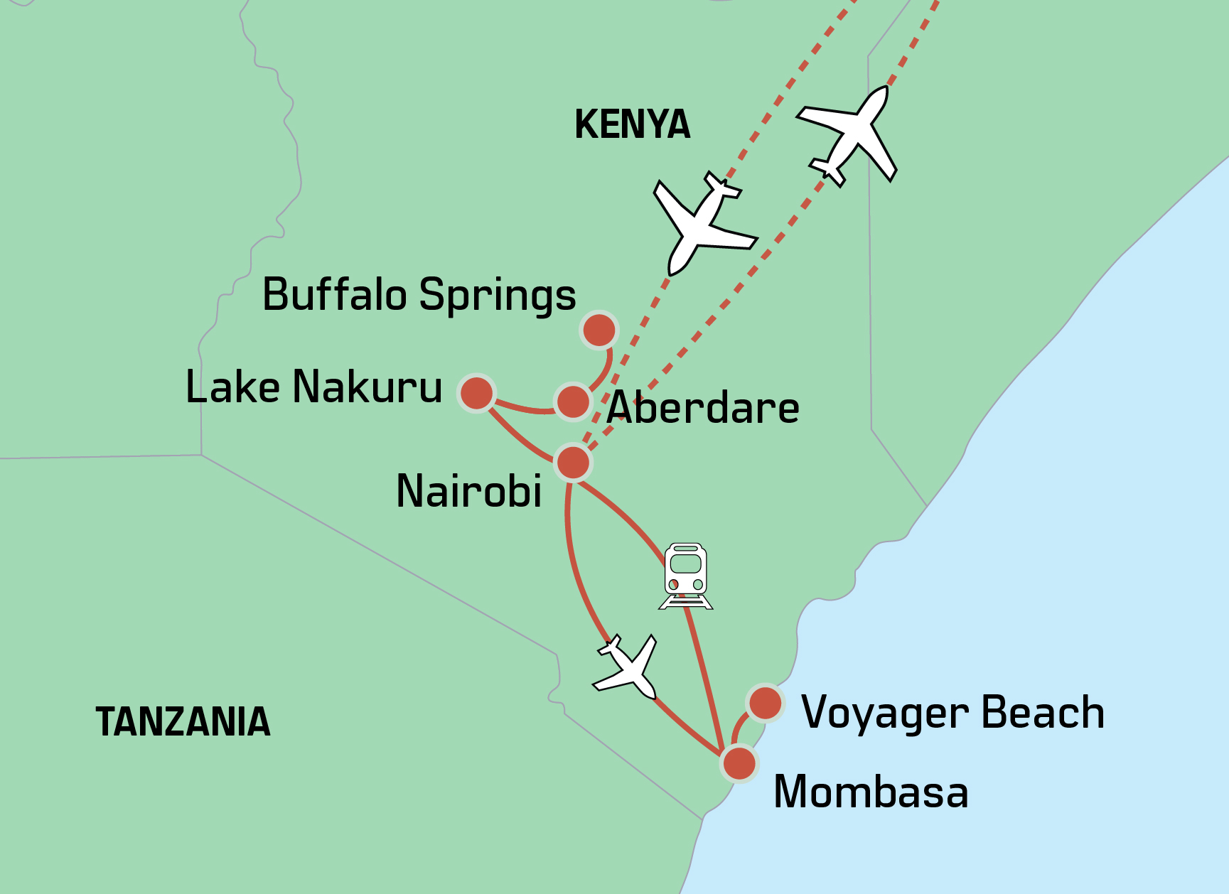 Voyager Beach Resort, som ligger på Nyali Beach nord for Mombasa, er et af kystens mere pulserende hoteller. Her bor du med Det indiske Ocean som nærmeste nabo og lige ud til den dejlige palmebeklædte strand. Hotellet byder på 3 forskellige poolområder, én til sjov og leg, én til afslapning og én til sport og svømning. Opholdet på Voyager Beach Resort er med All Inclusive, hvilket omfatter følgende: