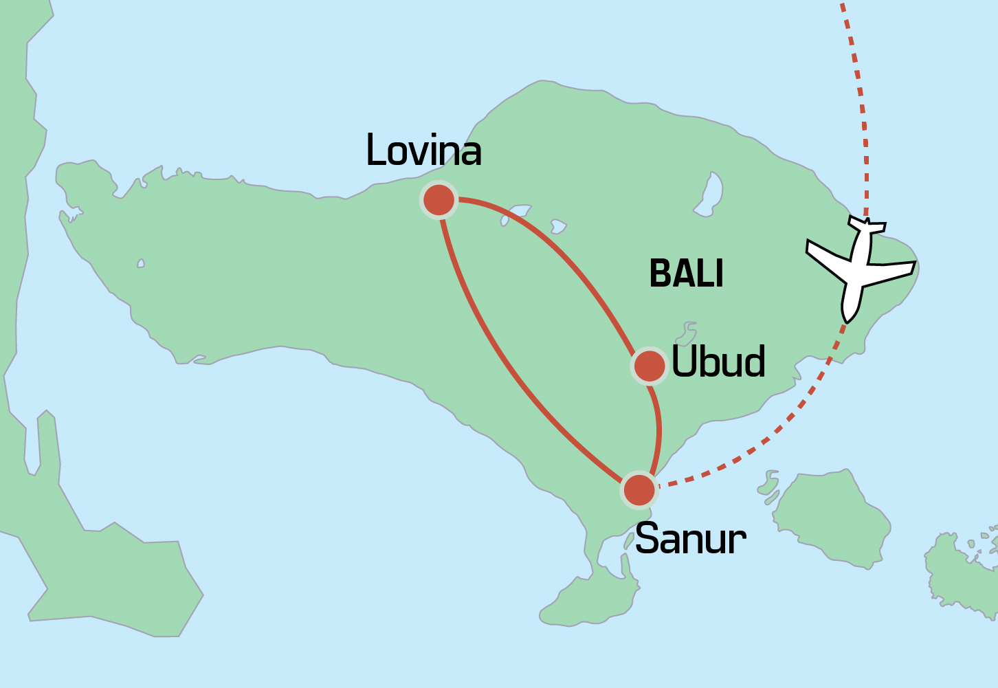 Dette skønne resort ligger i smørhullet mellem de nordbalinesiske Bedugul-bjerge og det azurblå Javahav i den hyggelige kystby Lovina. Her bor vi på deluxe-værelser i gåafstand fra den 200 meter lange strand, hvor du kan bade, sole dig og slappe af i en solstol under trækronerne.