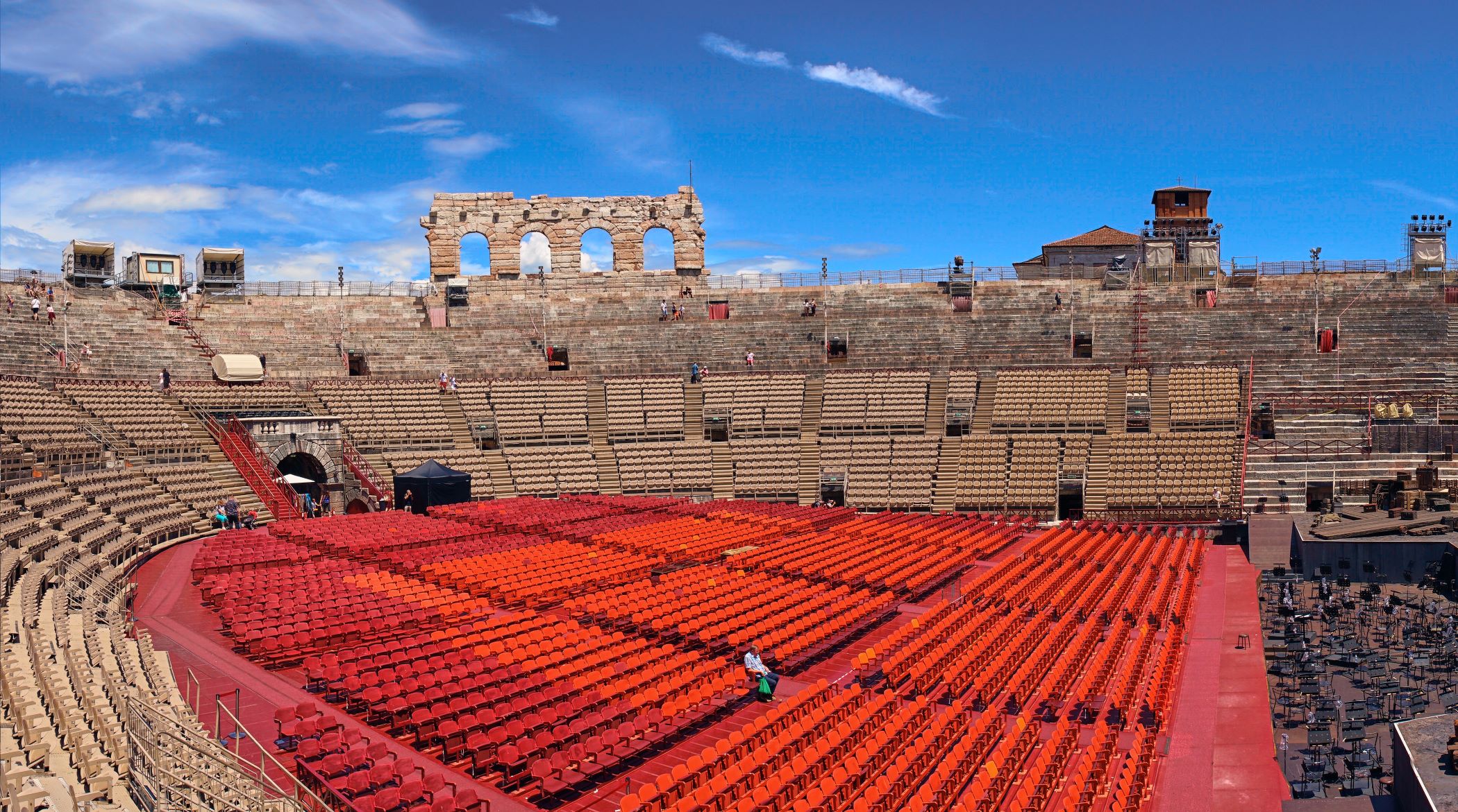 Midt i Verona ligger byens romerske amfiteater, der blev opført for 2.000 år siden til at huse bl.a. gladiatorkampe. I dag er det en noget mere fredelig form for underholdning, der udspiller sig under den åbne himmel i Arena di Verona, når op mod 15.000 tilskuere i de lune sommer- og efterårsmåneder sætter sig til rette på arenagulvet og nyder nogle af verdens ypperste operasangere prøve kræfter med Verdis og Puccinis største operaklassikere.