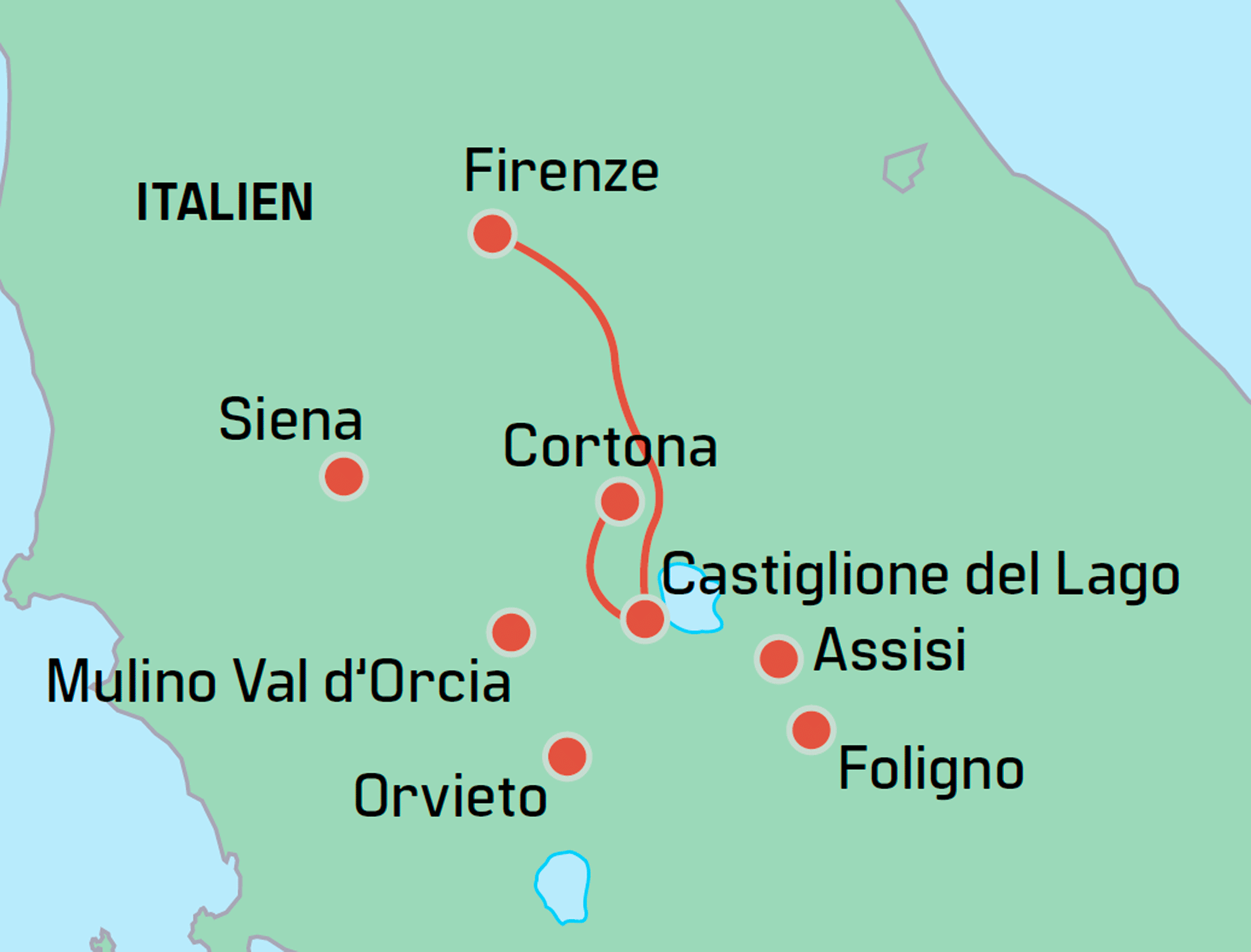 Lille og hyggeligt familiedrevet hotel med kun 34 værelser. Det er beliggende ca. 10 minutters gang fra Trasimeno-søen og Castiglione Del Lagos historiske centrum. Bag byportene gemmer sig en lille charmerende by med smalle gader, gode restauranter og spændende specialbutikker samt det gamle fæstningsværk Rocco Leone. Hotellet byder på pæne og enkle værelser, alle med eget badeværelse, hårtørrer, air condition, minibar og Wi-Fi. I den hyggelige restaurant serveres morgenmad og middag. Bag hotellet ligger det nye og lækre poolområde med solsenge og parasoller. Der er desuden elevator, TV-stue og cykler til rådighed for gæsterne.