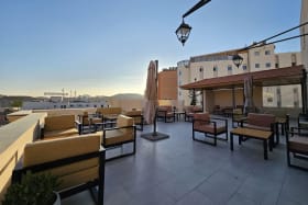 Du kan slappe af i hotellets traditionelle hammam-bade eller få en afslappende massage, mens restauranten, som er smukt udhugget i klippen, byder på et udvalg af orientalske retter, som du kan nyde både indenfor og udenfor, og skulle du få lyst til en stille stund, tilbyder hotellets lounge et sted at nyde en kop te.