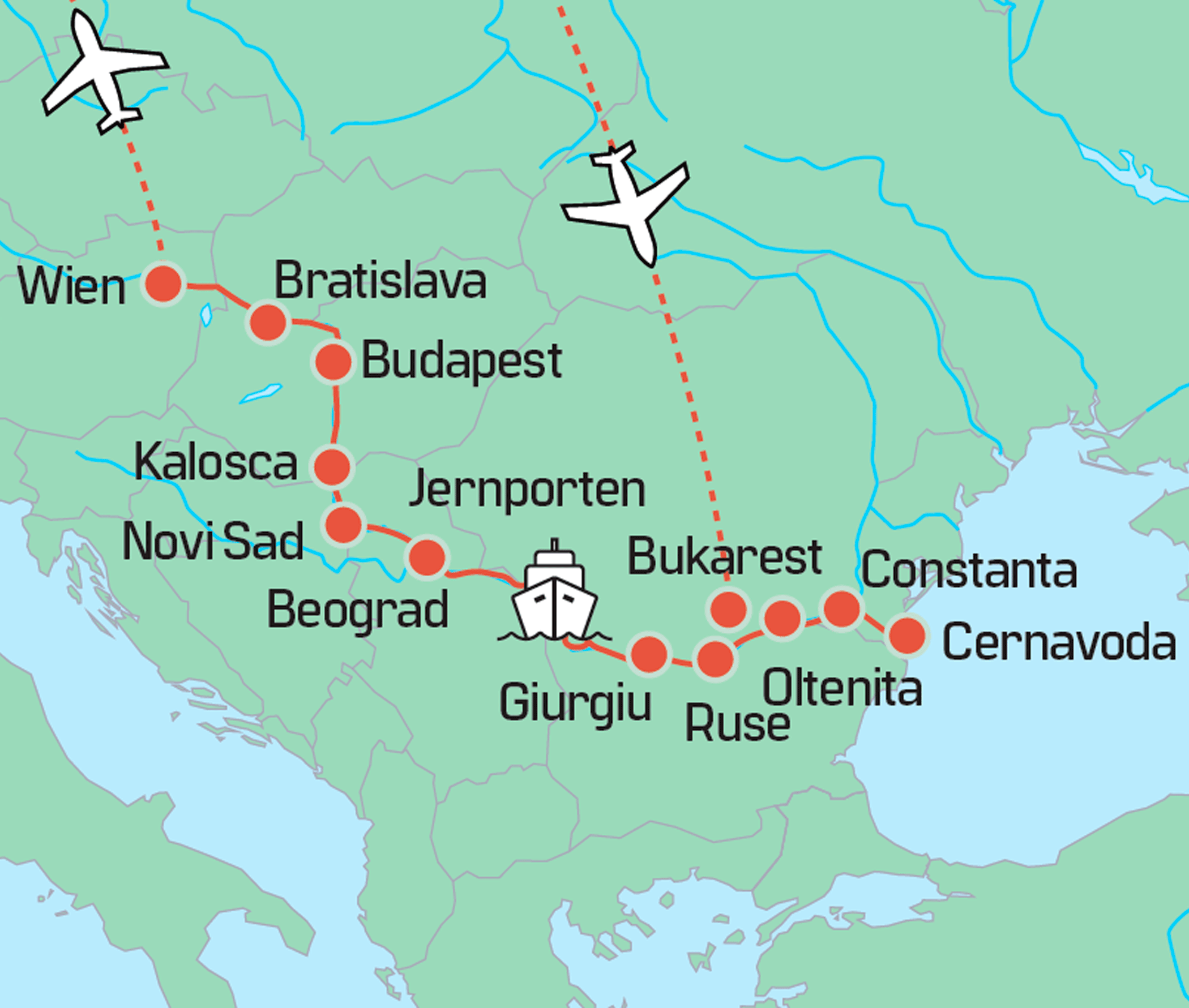 Frokost og aftensmad: Øl, vand og skibets vine. Fra baren: Øl, vand og dagens vine samt kaffe, te, drinks m.m. i tidsrummet kl. 11:00 - 23:00Se mere om skibet her