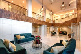 Hotellet råder også over et stort terrasseområde med to swimmingpools, bar og god plads til at slappe af og nyde nogel afslappende timer under solen i den nordthailandske storby.